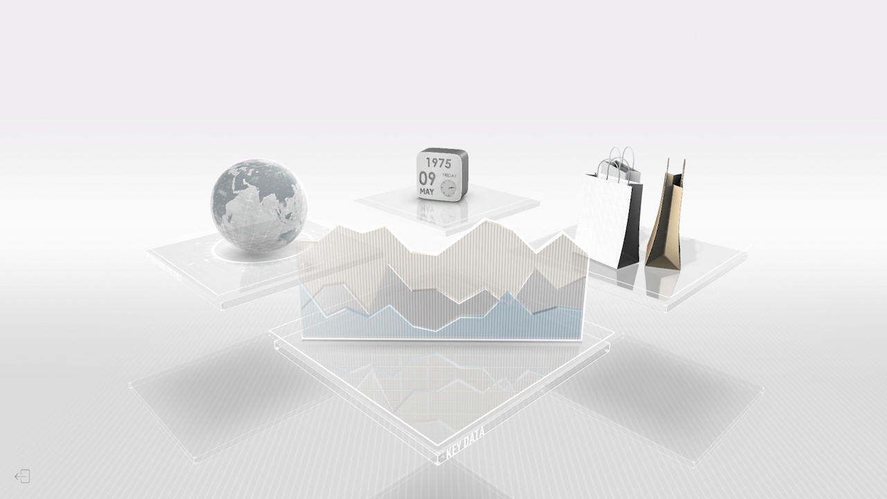 La presentación es no lineal y permite al ponente elegir los temas a presentar a través de un atractivo interfaz en 3D. Todos los textos y cifras están vinculados a un archivo Excel de manera que la presentación es actualizada directamente por el cliente, reaccionando de forma automática las animaciones y gráficos a los nuevos valores introducidos. Las fotografías y vídeos de la presentación también están vinculados a una carpeta multimedia, de forma que pueden ser sustituidos por el cliente fácilmente