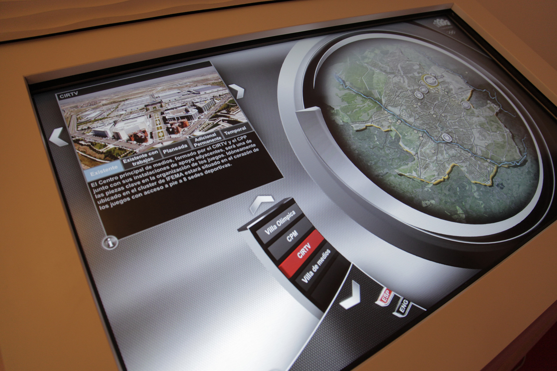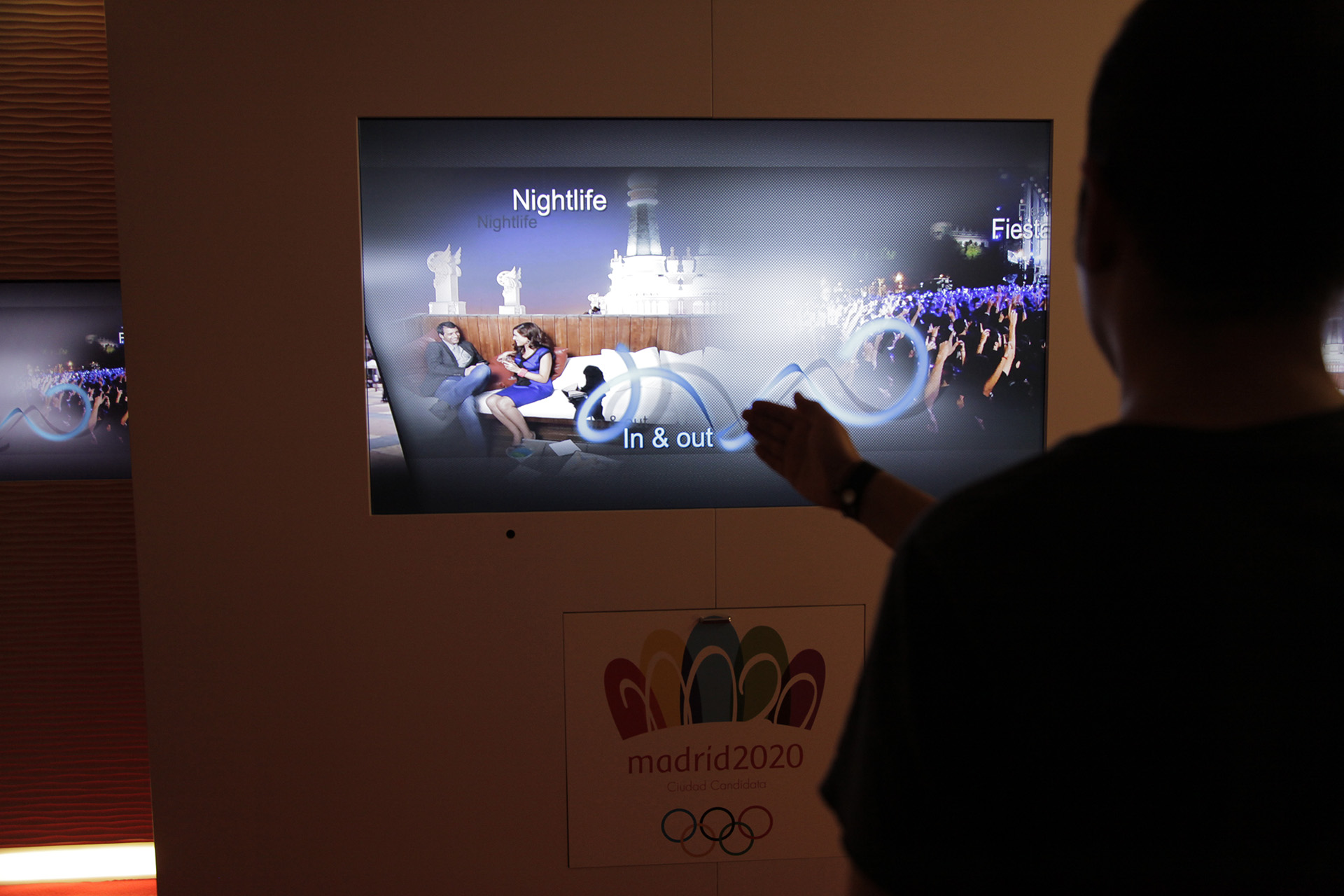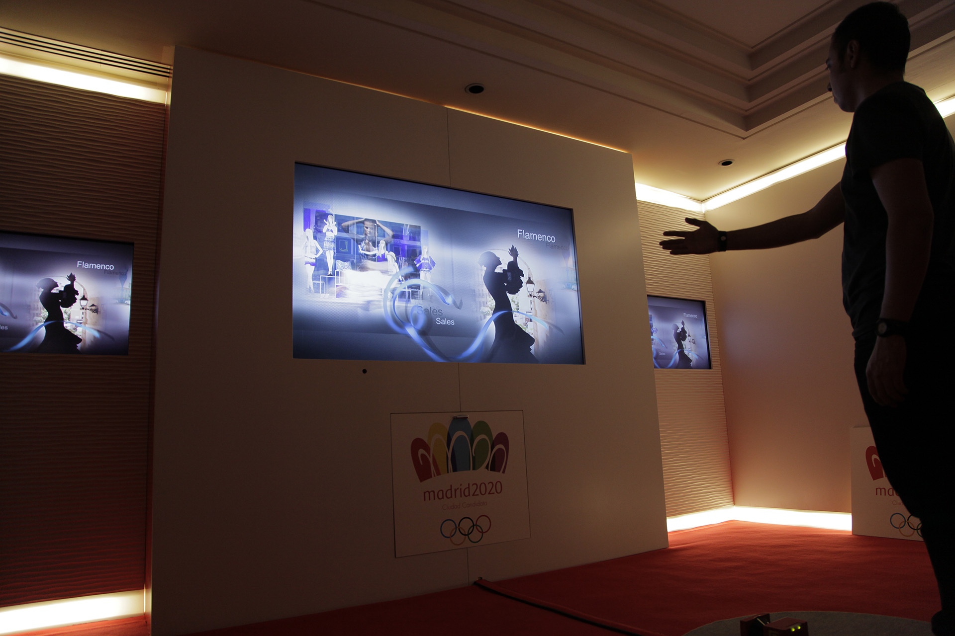 Además, para tener una experiencia más auténtica se creó una segunda presentación también en Ventuz, con imágenes y vídeos de los aspectos más característicos de la ciudad que el público controlaba con el movimiento de sus manos gracias a un sensor láser Radar Touch instalado frente a tres pantallas de plasma de grandes dimensiones.