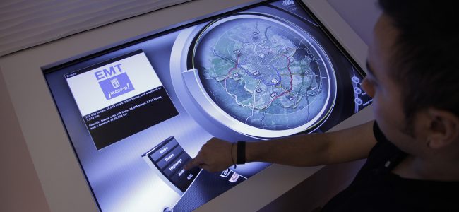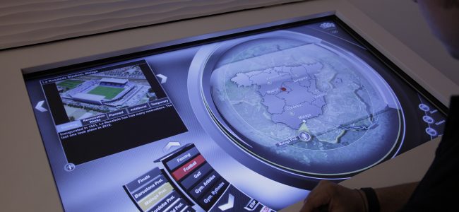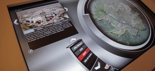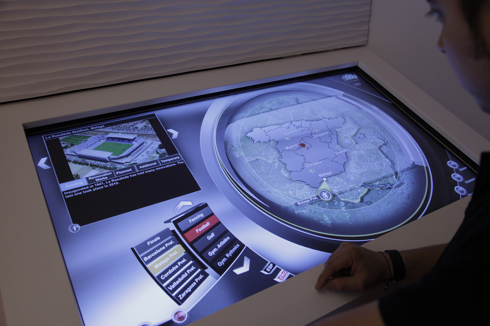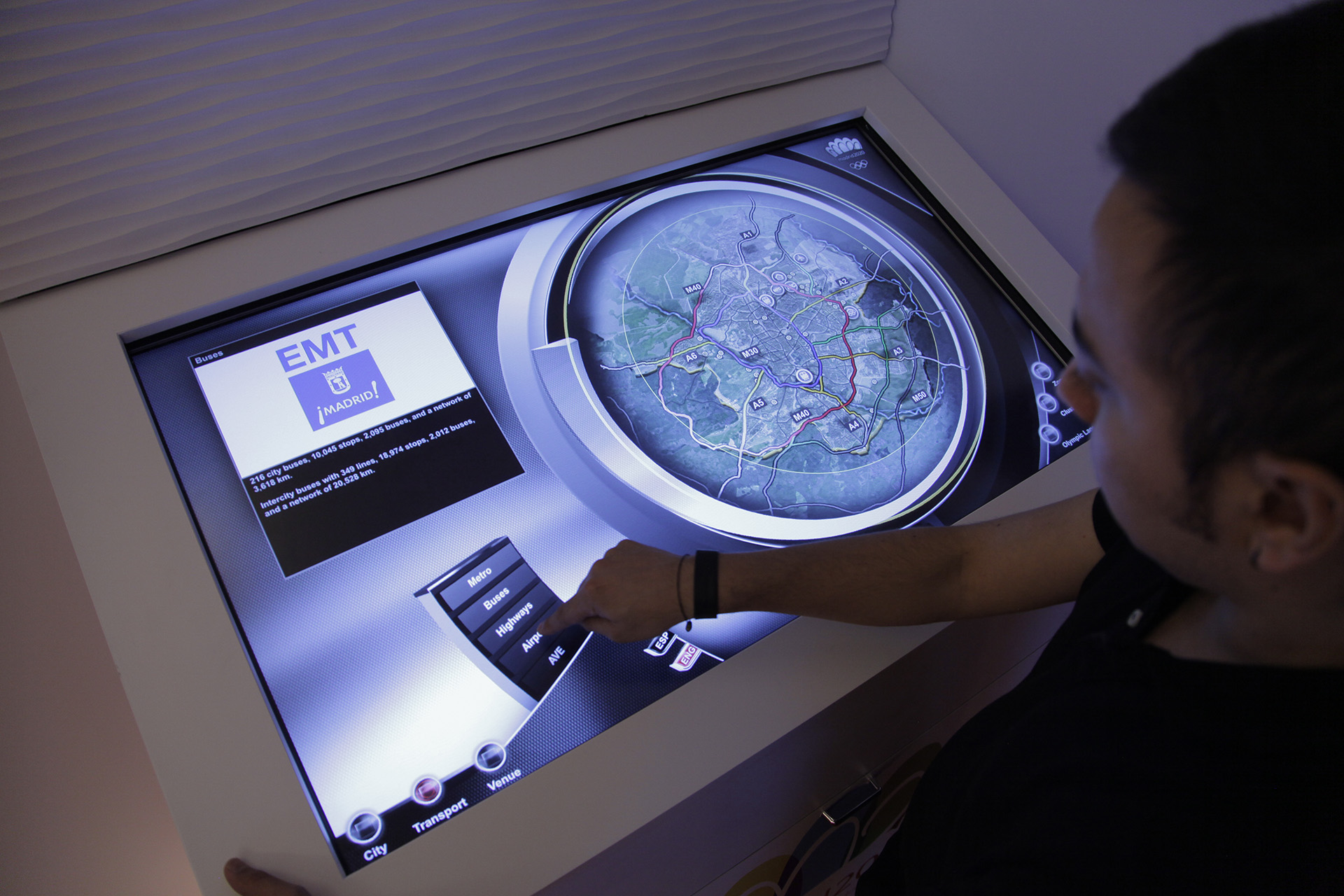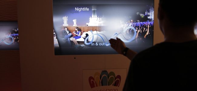Además, para tener una experiencia más auténtica se creó una segunda presentación también en Ventuz, con imágenes y vídeos de los aspectos más característicos de la ciudad que el público controlaba con el movimiento de sus manos gracias a un sensor láser Radar Touch instalado frente a tres pantallas de plasma de grandes dimensiones.